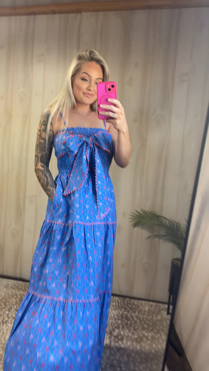 Sweet, flirty, and effortlessly pretty — the Bluebell Maxi is your go-to for sunshine-filled days! Featuring a smocked bodice, tiered skirt, and the cutest front bow detail.
