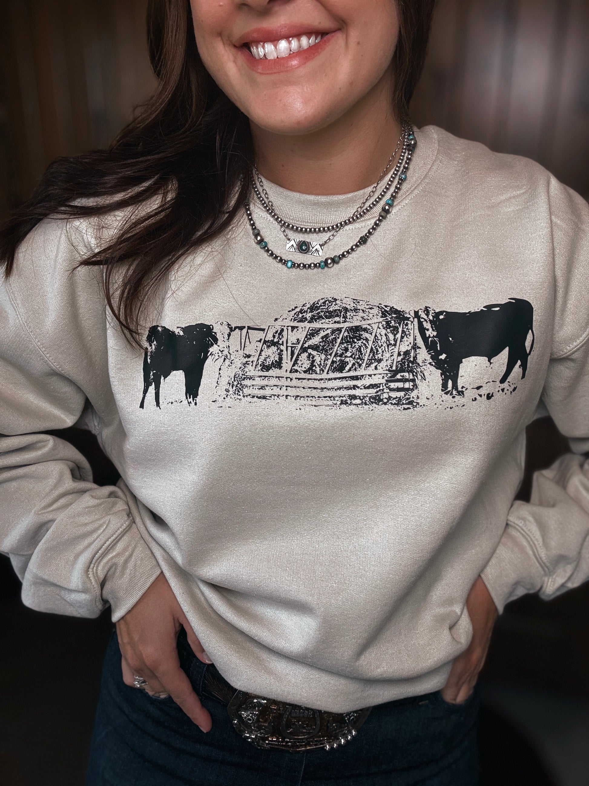 The Cattle Grazing Pullover blends comfort and Western charm in one piece. Designed in a soft sand hue, it’s perfect for everything from long days on the ranch to casual outings in town.
