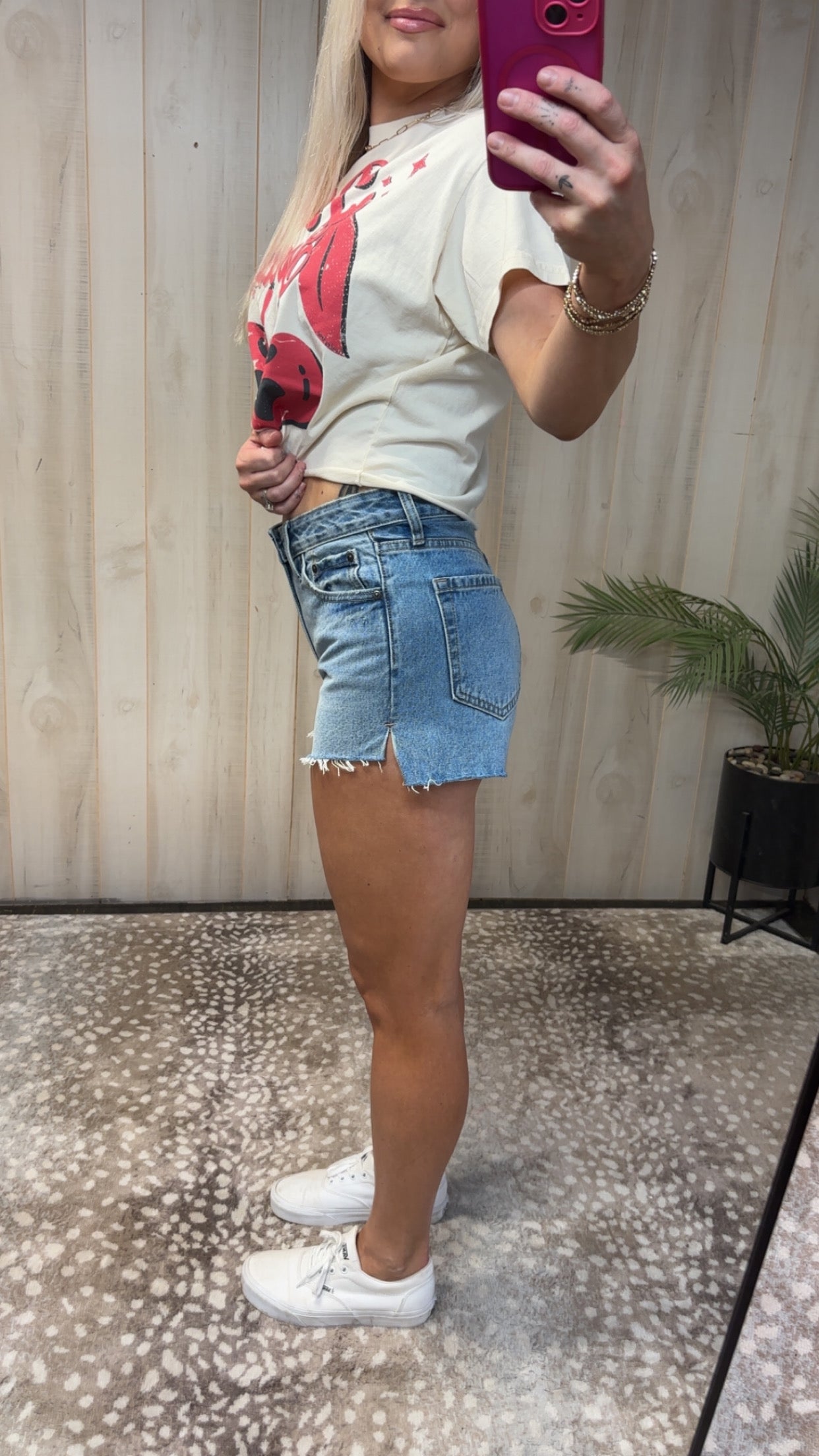 Expertly crafted with premium denim, our High Rise Denim Shorts offer both style and functionality. Featuring a unique side slit design and a shorter front hem with a longer back, these shorts provide maximum comfort and accentuate your curves. Elevate your summer wardrobe with our versatile and chic shorts.