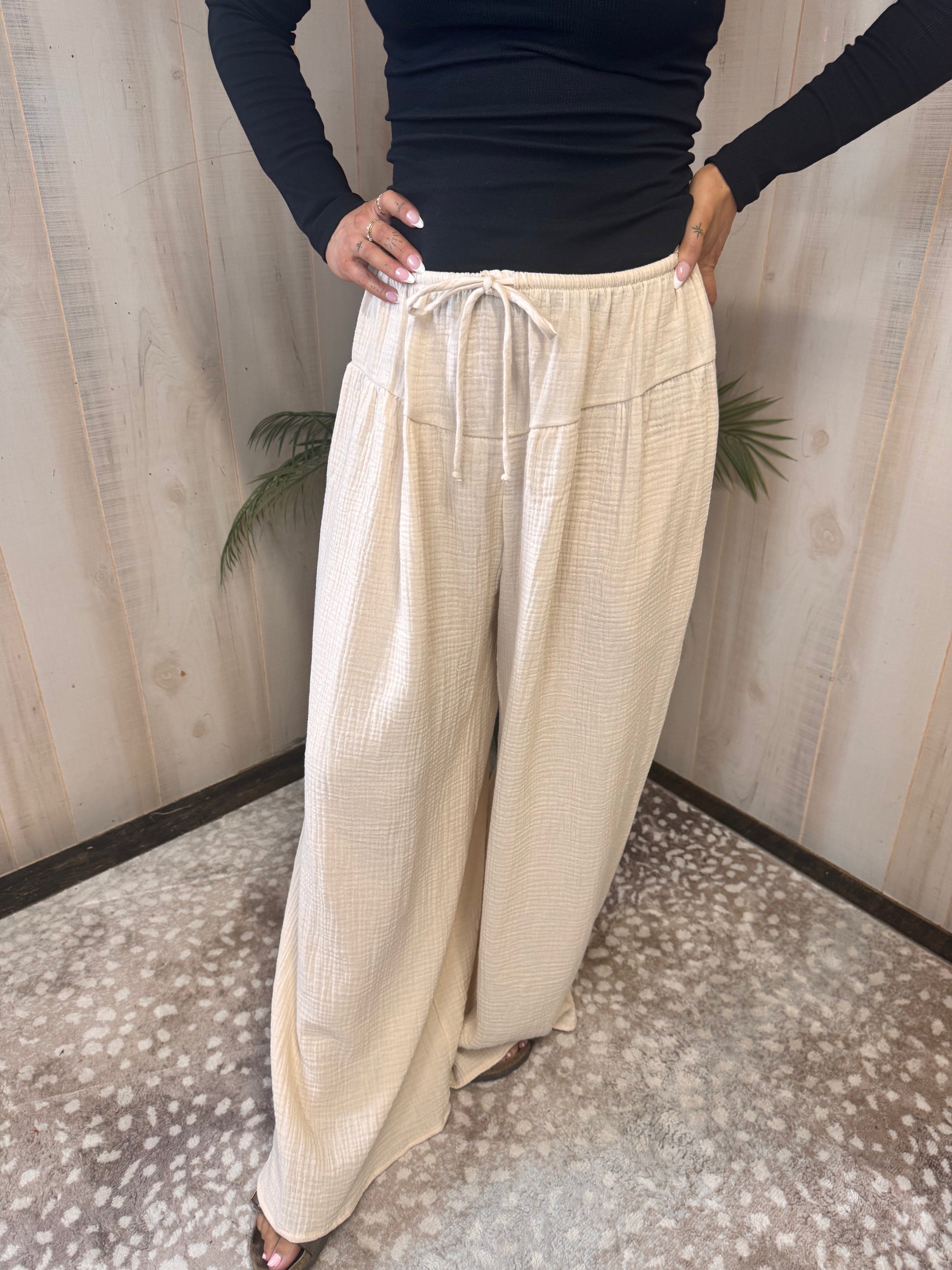 Wide Leg Cotton Gauze Pants